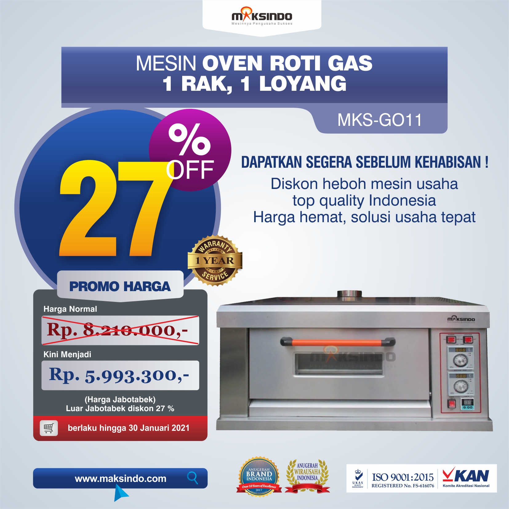 New Model Mesin Oven Gas Maksindo (1 deck , 1 loyang)